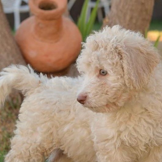 El color blanco en el Perro de Agua Español es el resultado de la ausencia de pigmentación. Esto puede ser causado por varios factores genéticos, incluyendo la presencia de alelos en el locus S (spotting). Los perros con alelos en este locus pueden tener áreas de su manto sin pigmento, resultando en un color blanco. En algunos casos, el blanco puede ser el color predominante si la ausencia de pigmentación es extensa.